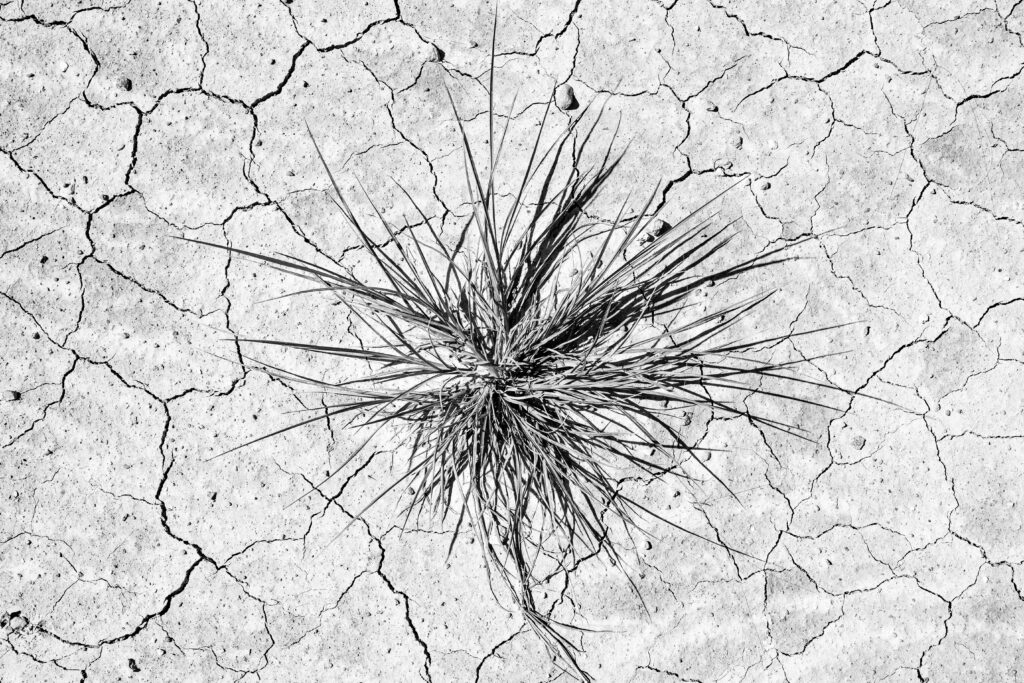 Em meio ao solo rachado, a vida resiste. Esta obra captura a força bruta da natureza, onde uma planta solitária rompe a aridez, simbolizando resiliência, renovação e persistência. A composição em preto e branco acentua os contrastes entre a fragilidade e a força, tornando essa obra uma peça marcante para qualquer ambiente.